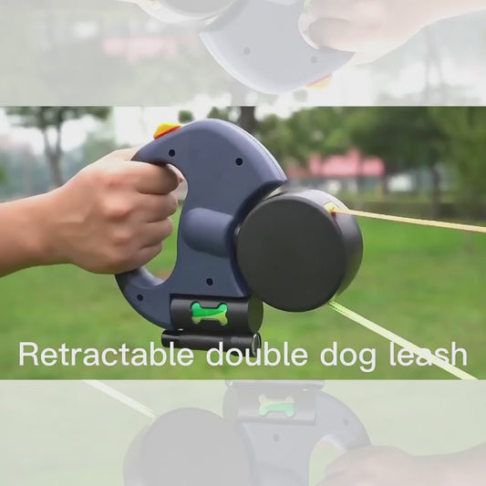 Correa Doble para Perros con Linterna y Dispensador de Bolsas