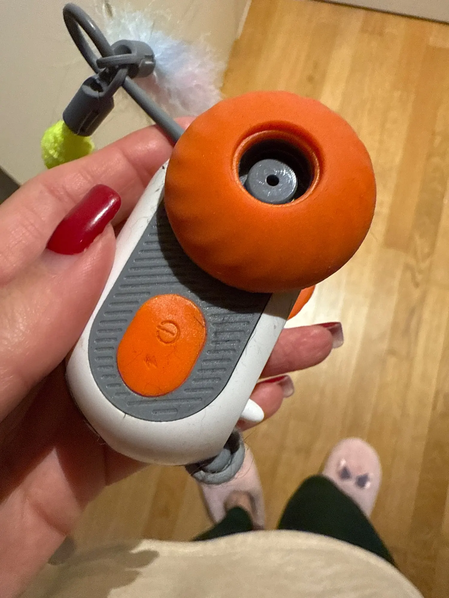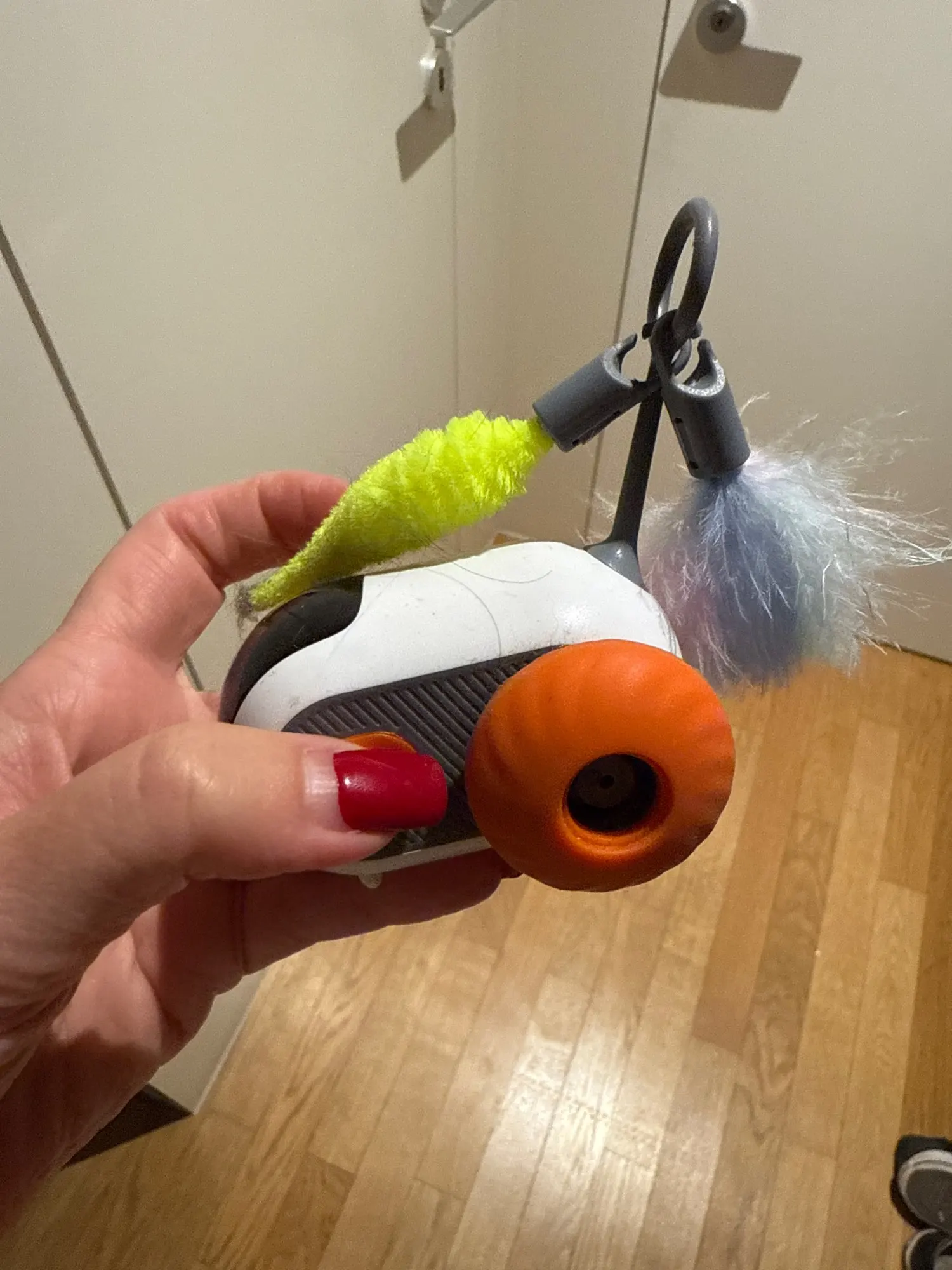 ¡Mi gato está encantado! Le gusta lo rápido que este juguete se escapa de él. ¡Muchas gracias al vendedor! Hay una batería en el control remoto (no sabía eso).