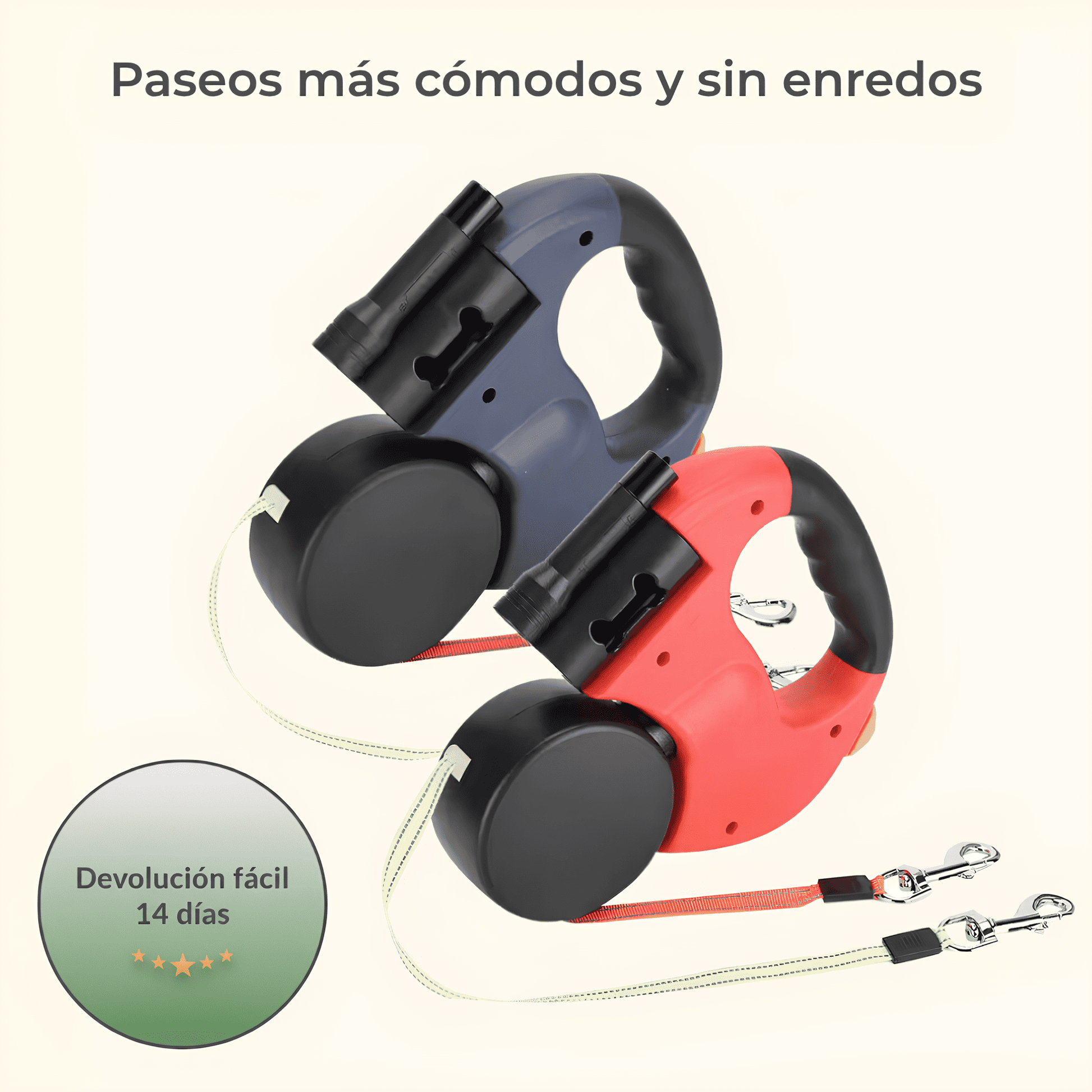 Disfruta de paseos cómodos y sin estrés con esta correa doble retráctil. Controla dos mascotas al mismo tiempo con seguridad y libertad, combinando funcionalidad y practicidad en cada paseo.