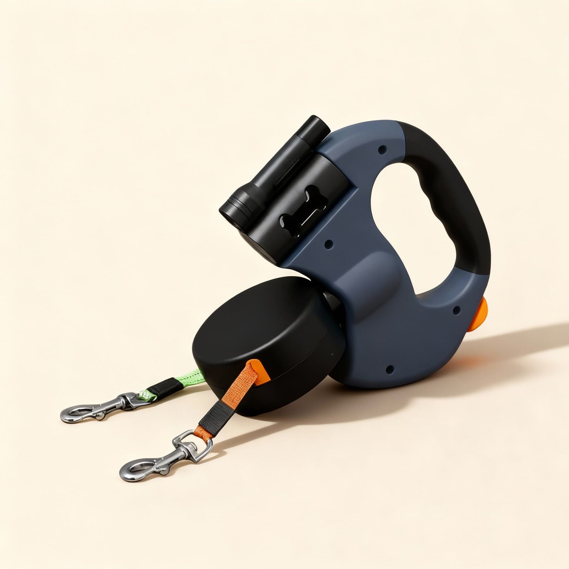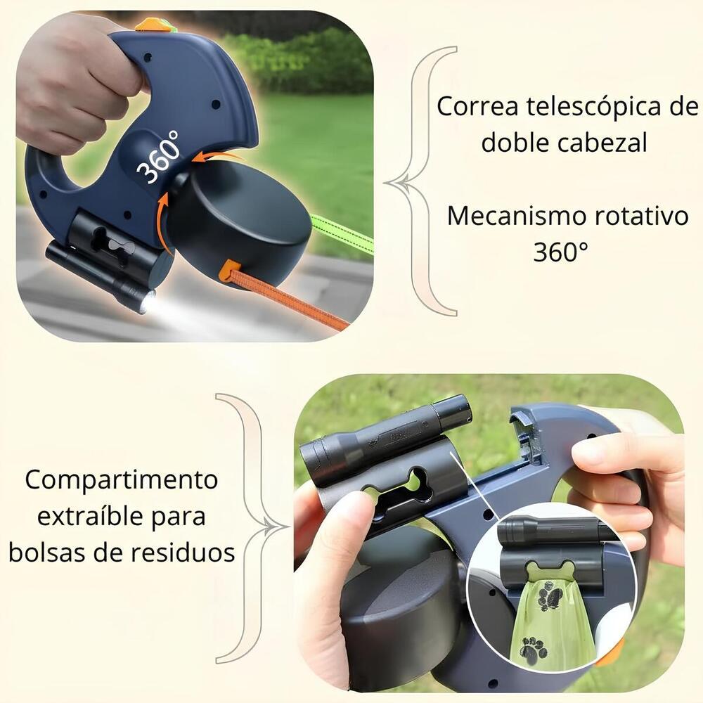 Correa Doble para Perros con Linterna y Dispensador de Bolsas